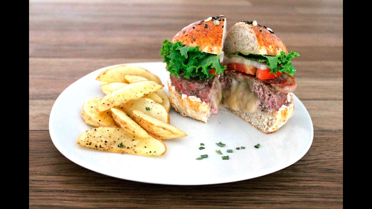 Carne 100% de res rellena de queso mozzarella, costra de queso, tocino y cebolla caramelizada.